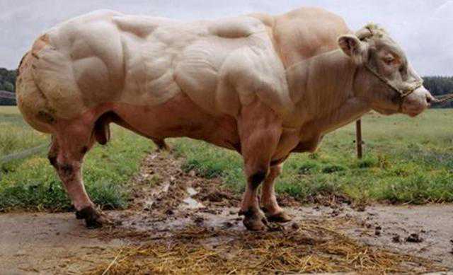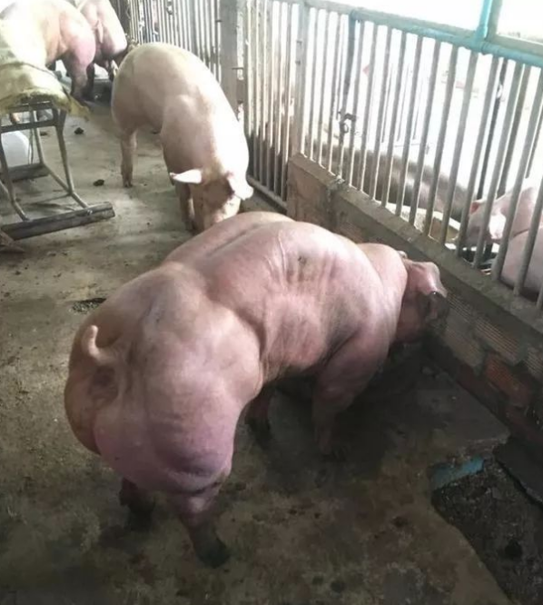 首先我们来看一看这个魔鬼牛,这个魔鬼牛跟一般的牛不一样的地方就是它的腰部、臀部、肩部、背部等地方的肌肉都特别的发达,是的,特别的发达,发达到这牛走路都走不稳,站都不好站的程度了,你们觉的它的肉能吃吗?很多人很认为这是转基因牛,其实也不能片面的这样认为,它是经过了基因突变失去了肌肉抑制剂,没有肌肉抑制剂的束缚肌肉就各种疯狂的生长,于是就看到了我们在本文开头的那一幕。身长5米体重3吨的怪兽。现在不单单是牛了,猪也是一样了,就在我们的邻国柬埔寨的一个小农场里面,一组异常健硕的猪的照片在网络上迅速的走红,这些猪也是有我们刚才看到的这些牛的特点,屁股大,腰圆,背厚,而且这些猪跟吃了瘦肉精一样,四肢已经无力支持它的身体,走起路来非常的困难,表情也很痛苦,据知情人士报道,这些猪被饲养员注射了过量的生长激素和类固醇类药物,导致了猪肌肉突变成了现在这个模样。