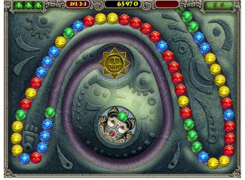 祖玛是由PopcapGames公司在2004年一月份推出的一款PC端的意志小游戏,游戏设计的思路是玩家通过操控祖玛尽量去消除珠子,防止珠子掉入到轨道终点的洞穴中。祖玛是一只可爱的青蛙,他会吐出各种各样的珠子,颜色各不相同,造型新颖。能量彩珠会固定的沿着轨道不停的向前行驶,最终会进入到骷髅的口中,祖玛则需要根据口中珠子的颜色来选择正确的目标,通过消除颜色相同的珠子来取得游戏的胜利。游戏规则很容易理解,机制也很简单,很容易上手,祖玛可以说是很有创意的一款游戏。