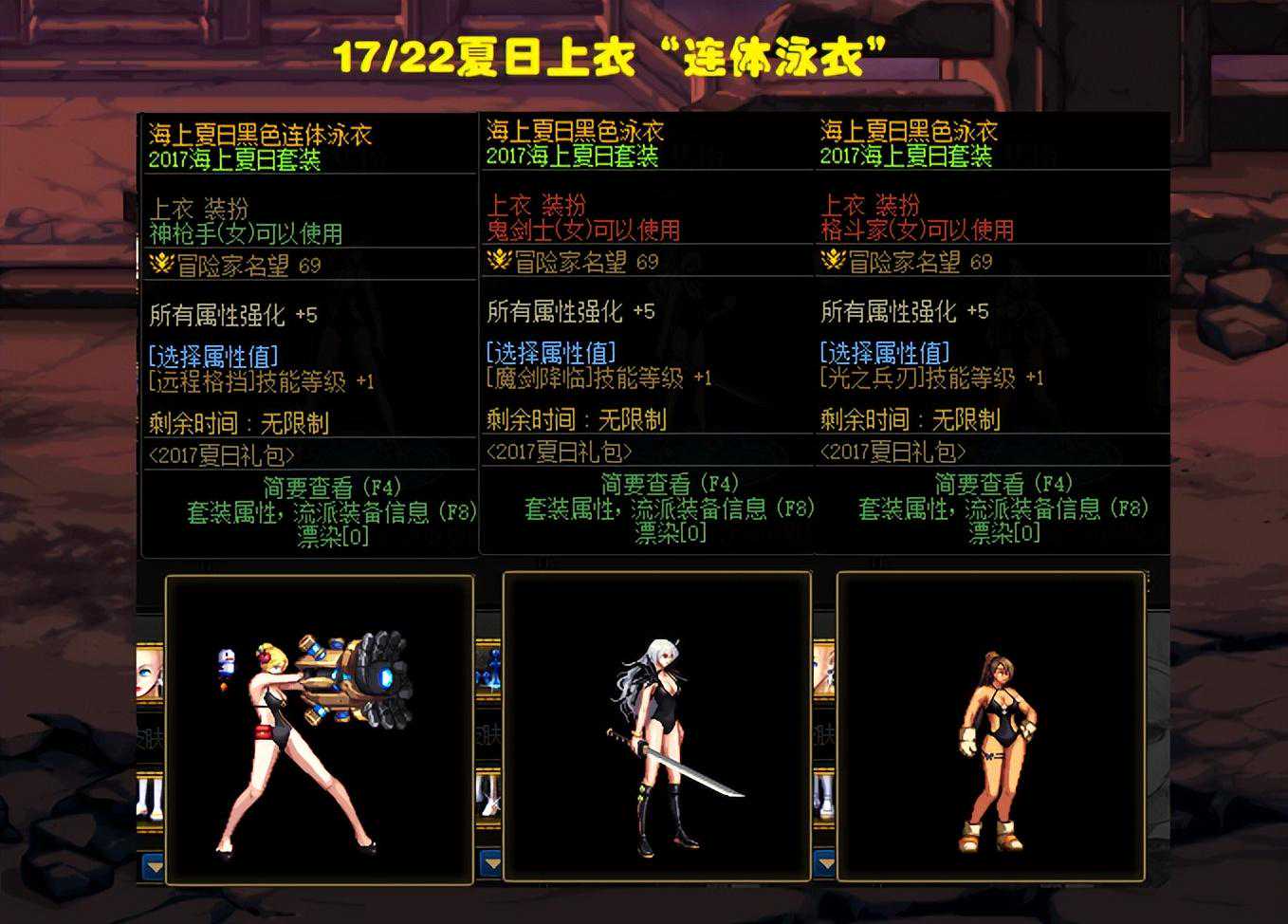 如果大家想用最低价格入手夏日套,那么比较推荐17年或22年的夏日上衣,因为这个是连体上衣,也包含了裤衩子,等于节省了一件时装的钱。