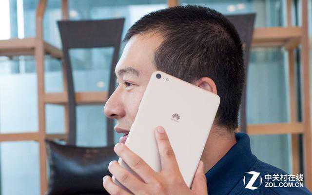 机身正面采用了传统的手机式布局风格,听筒、距离传感器、前置摄像头以及屏幕下方的华为Logo构成了机身正面最显著的特征,呼吸灯隐藏在了听筒的角落,当有信息提示或者充电时,呼吸灯会闪烁或者变换颜色来提醒有新信息或者电量已满。