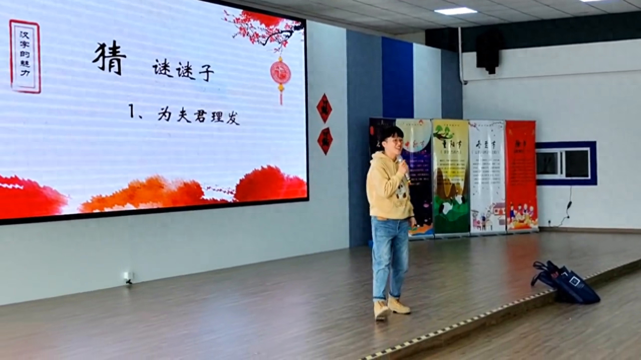 我再提醒一下,刚才第一个节目的时候有一个老师就是这个发型播了,刚刚好是那边的一位,谢谢。等一下把这个谜语谜底就是光狼头,这个只有上海人能猜的出来,别的地方可没有这样子的说法。