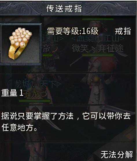 事情是这样的,这个传送戒指第一任主人是一个名叫空白的道士发现的,根据他所说这个传送戒指是在暗殿爆出来的,但是他是个平民玩家发挥不出戒指的作用,也就是平时招摇一下,他曾经以4000人民币出售这枚戒指但是没有人买,直到后来一个ID名为幽灵の龙马的一个玩家道士用当时市场价3000多人民币裁决龙纹等一些装备把这枚传送戒指换了过来,但是无名万万没想到因为这枚戒指后面发生了一系列的暴力事件!在龙马拿到了戒指之后果然发挥了这枚戒指的优势,那时候打赤月的时候都是一路敢死队才过去,现在有了传送戒指的龙马一人独闯赤月老巢,打出了很多天尊套,在当时一套天尊套市场价在2000作用!他通过卖天尊套一下赚的锅满盆满的,因为这件事情也引来了一些心怀鬼胎的人,眼红的人也是很多。