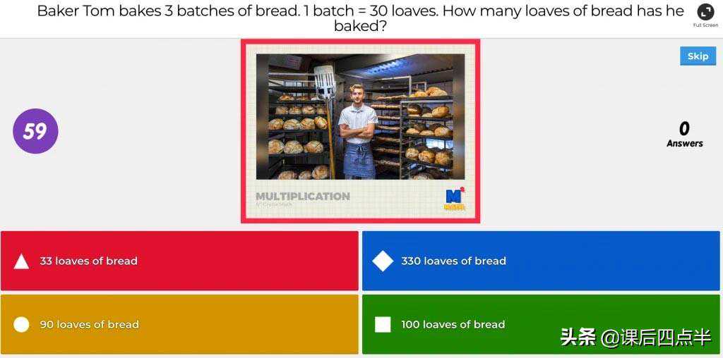 每组有一分钟的时间来提出他们的答案和策略。他们篮子里的豆袋将代表乘法问题的乘积。