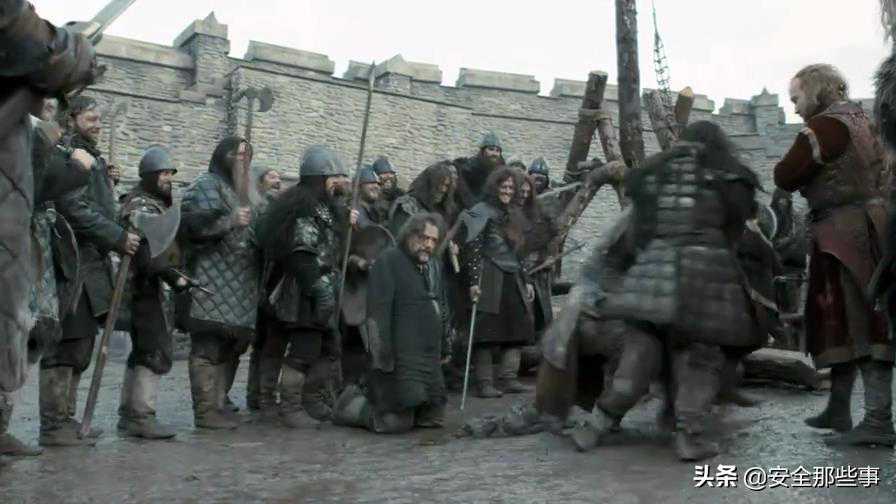 7、托马斯一行四人固守城堡,眼睁睁看着奥尔巴尼男爵被斩断四肢后绞死。随后,约翰王命人挖通地道,火攻城堡。