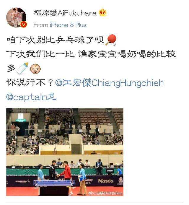老公输给六边形战士马龙,福原爱也不忘调侃,乒乓球就不要比了,比宝宝喝奶吧,小编觉得这个可以有,希望下一季爸爸去哪儿提前预定江宏杰和马龙,我一定期期追!在《幸福三重奏》中这两口子的画风是这样的。