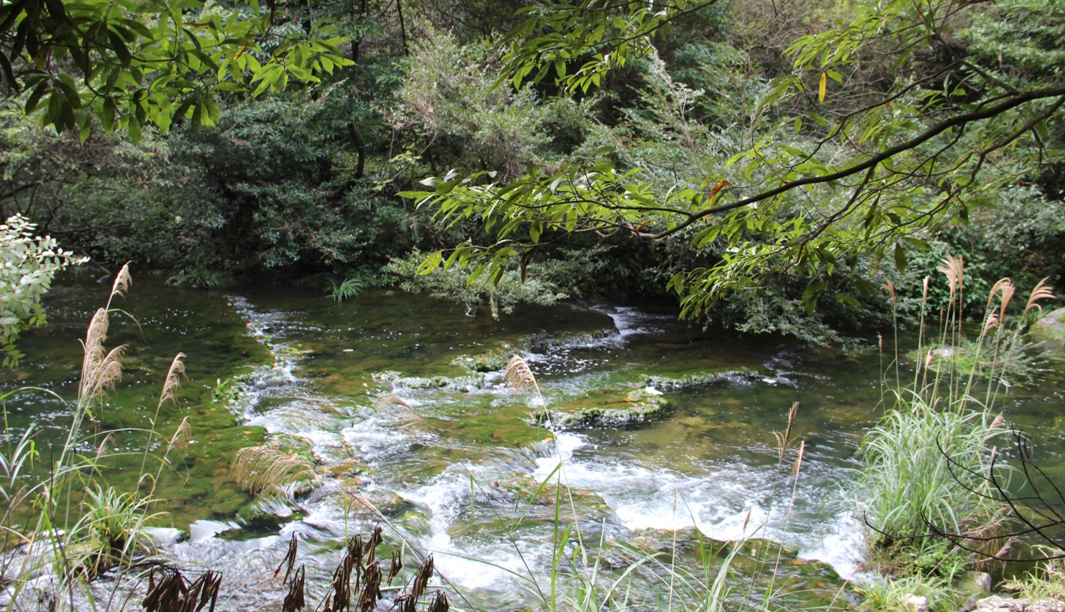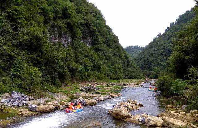 2清江河谷清江河,又称乐稼河、泉涧河。发源于团溪龙岩,流经团溪、西坪高原盆地,从西坪镇乐稼大碑桥下探到西坪镇茶园戏子滩,汇入湘江,海拔高度从900米左右下降到700米左右,形成地缝峡谷。河水时而湍急,时而平缓,河谷两岸泉眼、瀑布密布、丛林茂密,溶洞、岩壁遍布,水利遗迹、古磨房遗迹众多。清江河谷河水清澈、空气清新,如空谷幽兰,沁人心脾。清江河漂流从西坪镇熬水溪开始、经石家渡、金竹抽水房、柏香沟、猴子岩、山渡龙潭、烧碳沟、到泉涧水,全长约5公里,几乎全穿清江河谷。漂流可全方位欣赏两岸河谷风光。身旁是郁郁葱葱的山林和重峦叠嶂的山峰。时而惊涛骇浪、一飞冲天、惊险剌激,时而荡心悦目,淡雅舒缓、心神俱醉。让你全身心投入到原始山与水的怀抱之中。