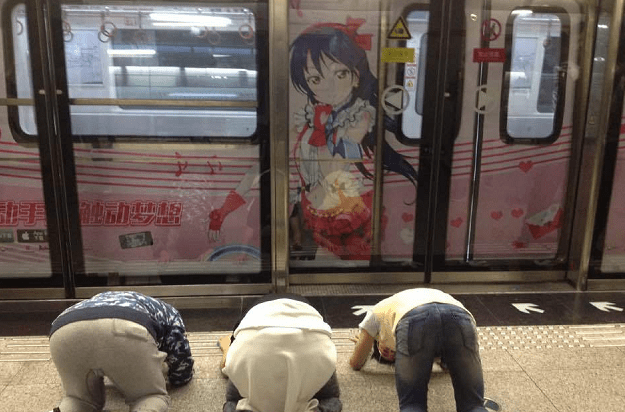 这就是复刻2014年的时候某LL粉丝在上海地铁二号线跪拜的事件吧?当时也因为这件事,“痛地铁”二号线被雪藏了。而如今唐可可看到校园偶像之后当着伙伴们的面前跪下朝拜,让不少网友吐槽:也太原生态了吧?这就是上海偶像吗?