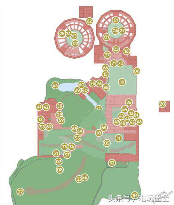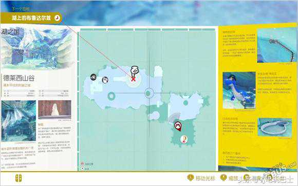 但当你真正开始收集之后才能够切身实地的清楚感觉到马里奥的箱庭世界,或者说是任天堂的箱庭世界充满了多么大的魔力。以森之国为例,不妨看看下面这张月亮位置标注图: