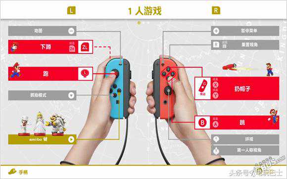 Switch目前最佳的双持玩法最佳的HD震动表现,没有之一Switch最初的宣传就着重展现其Joy-Con手柄(以下简称JC)的与众不同:自带HD震动、六轴重力感应、既能合体亦能拆分。但发售至今所推出的游戏上来看,JC手柄的HD震动的表现平平,并且震感远不如PS4和X1;适合拆分双持游玩的游戏少之又少;狗头合体后又因为按键偏硬、摇杆较短远不及pro手柄的手感。如今大部分经常玩TV模式的Switch玩家几乎都已经配备了pro手柄作为第一选择,不少人都表示“有了小三(pro)之后,谁还在乎原配(JC)啊?”然而这次《超级马里奥:奥德赛》中,作为Switch的原配JC可以说是狠狠的出了一口恶气,整个游戏中双持JC绝对是所有操作玩法中最便捷、最精确的那一种。这一切主要都要归结于本作中那繁多的组合动作。