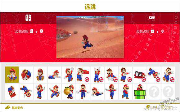 马里奥系列自从2D时代以来就一直遵循着“跑、跳、蹲”这三大核心玩法,随着三十多年来的发展,围绕着这三个核心,马里奥游戏中加入的小动作越来越多。到了《超级马里奥:奥德赛》中,映入眼帘的是“远跳、三级跳、后空翻、侧空翻……”看着那两排动作表,你甚至会怀疑自己正在玩一款FTG游戏,光是要记熟游戏中所有的操作指令就已经需要花上相当的一段时间。