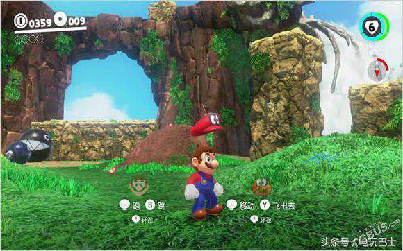 并且在本作中,系列首次将马里奥的帽子作为了攻击武器,通过扔出帽子来进行战斗亦或是与环境进行互动。而围绕着“扔帽子”的设计也衍生出一系列全新玩法,也就是这一“扔帽子”的动作,让双持JC充分发挥了用武之地。游戏中扔帽子的操作可以通过按键实现,但同时也可以通过体感达成,只需要拿着右JC的手模仿扔帽子的动作轻轻向前一甩,马里奥的帽子也就跟着飞了出去。当然这一体感操作在JC合体和pro手柄下也同样适用,不过这样的体感有多别扭相信玩家心里自然都是有X数的。或许就一个便利的体感还并不能够完全体现出双持JC的优势,毕竟直接通过按键也能够达成,但再配合上上方的组合动作就大大不一样了。在诸多需要玩家起跳的同时扔出帽子,亦或是在扔帽子的同时利用右摇杆调整视角时,虽然只是减少一个需要手动按键扔出帽子的步骤,却能够让玩家的整个操作流畅度提高个档次。此外像是扔出帽子后再朝着上下左右四个方向晃动JC进行二段位置调整,或是在翻滚、爬树时双手甩动JC进行加速,在一些细节功能上双持JC的方便准确程度也是其他操作方法所完全无法比拟的。