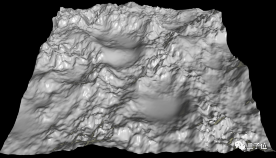 小哥采用了类似柏林噪声(Perlinnoise)的自定义算法,来生成环境高度图(Heightmap,用于生成三维地形的图像),随后进行简单修改让山景看起来更逼真。