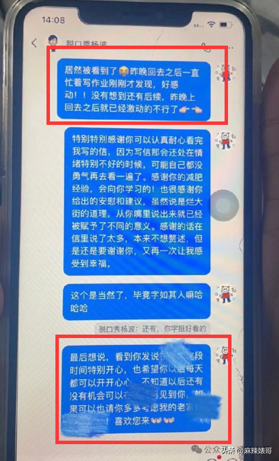 没想到之后杨波在社交平台上找到了她的账号,给她私信,并找话题和她聊天。
