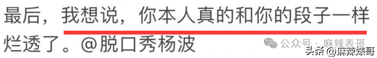 2月1日晚上,微博名“多吃汉堡1234”的女生大骂杨波本人和他的段子一样烂透了。