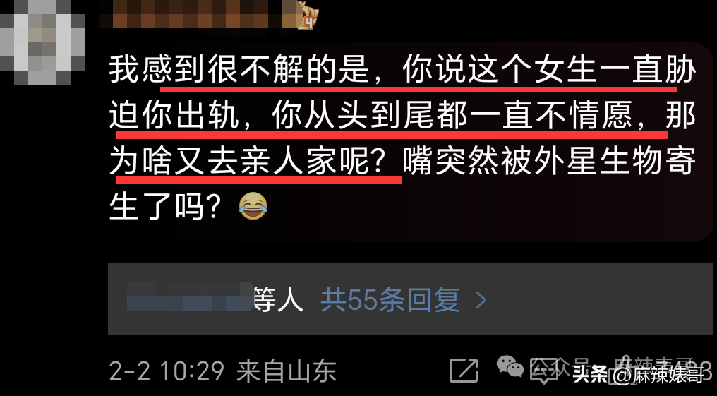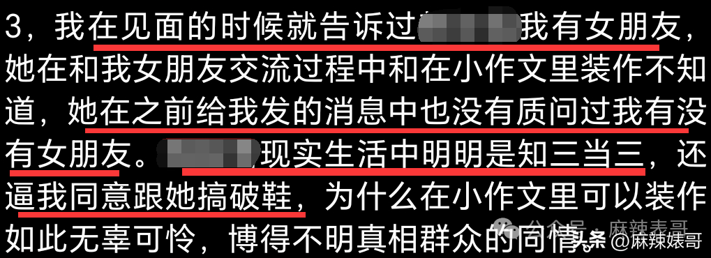 说自己在毫不知情的情况下被三,想讨要说法被杨波删除拉黑并被威胁封口。