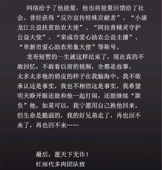 他曾荣获多项荣誉,并且在他去世时被颁发了“反诈宣传特殊贡献者”的奖项。团队对于他的离世感到非常难以接受,不愿相信这个事实。他们直言“生命是脆弱的,已经回不来了”。