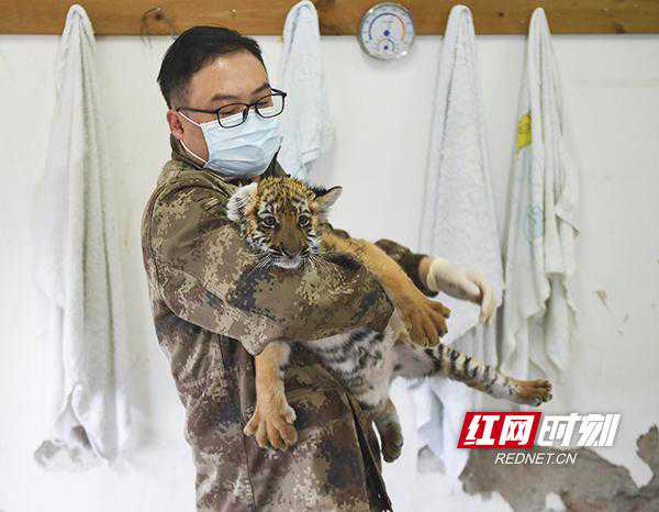 红网时刻1月21(记者李赛凤李璐张必闻通讯员刘姝伶)虎年到,长沙生态动物园也迎来了一只可爱的华南虎宝宝。1月20日,长沙生态动物园珍稀动物育养中心内,一只出生不到60天的华南虎宝宝,首次在市民游客朋友面前亮相。据了解,这只虎宝宝是长沙生态动物园首只人工育幼的华南虎幼崽。