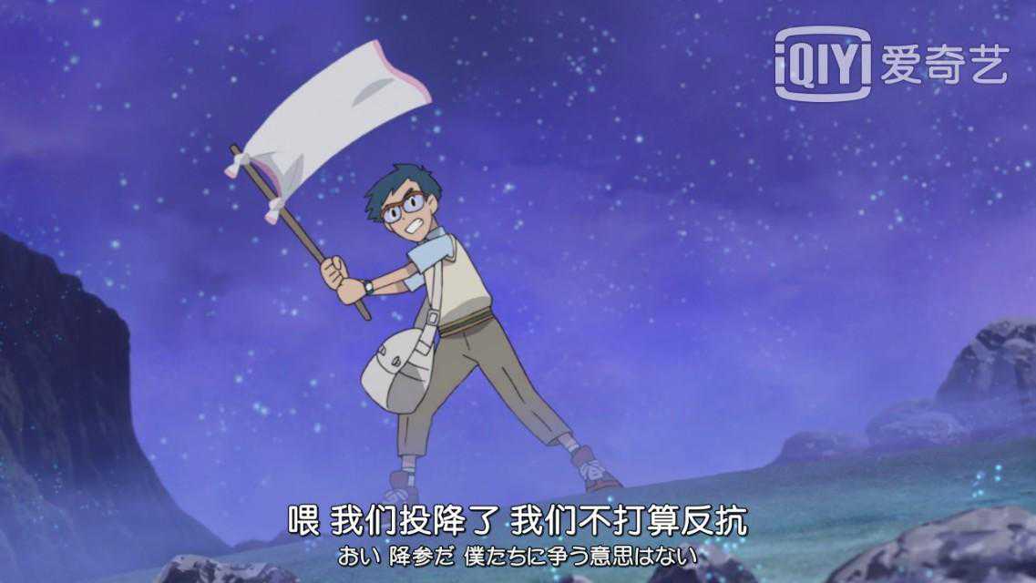 这时,阿助突然拿了美美的毛巾和树枝,举白旗投降了。