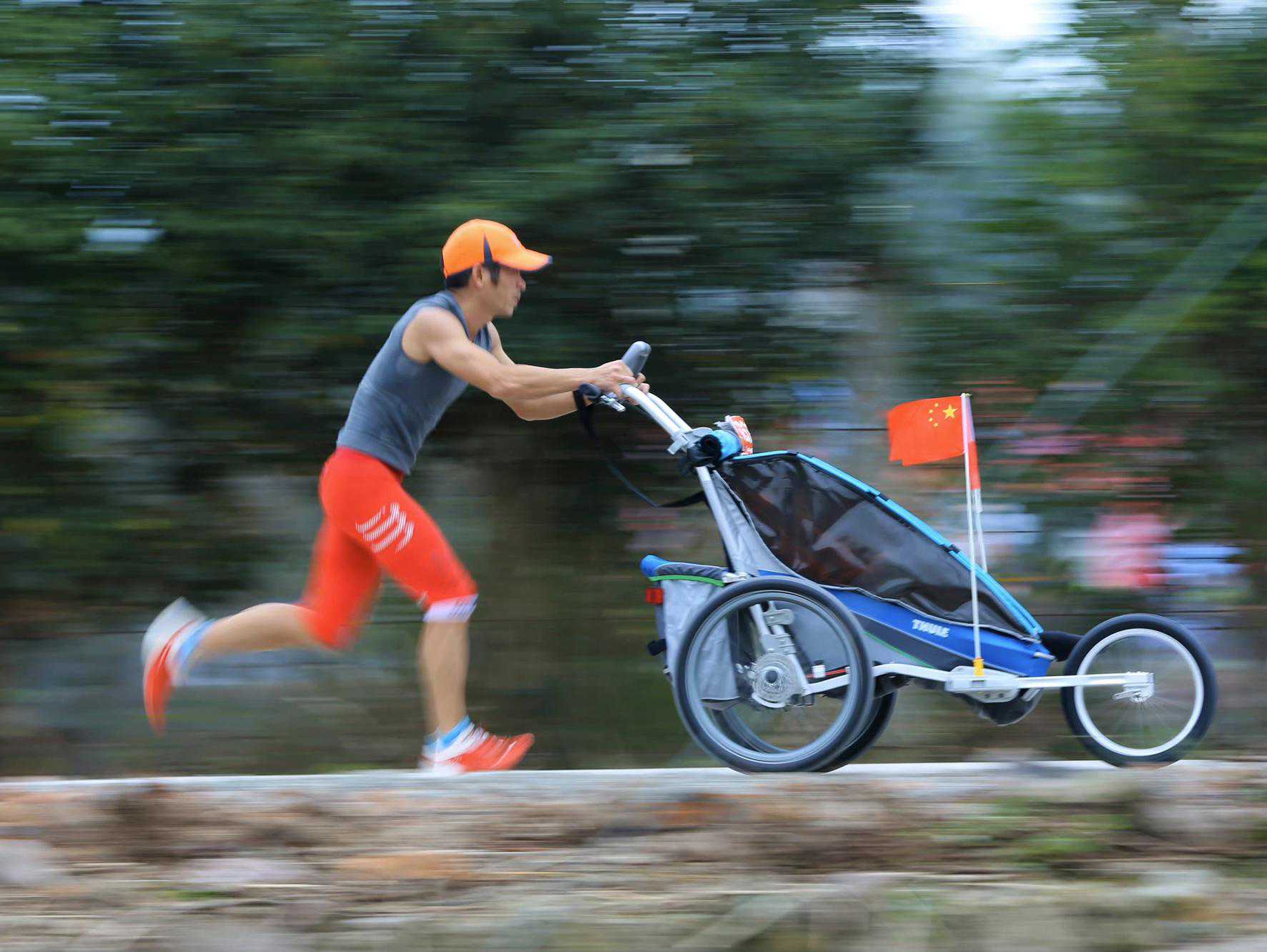 “推着车子和小柏,双手不能摆臂,会影响跑步的节奏和平衡,跑起来会很费力,但我也会尽力尝试从人群中穿插。”他感到小柏有追逐上去的欲望。