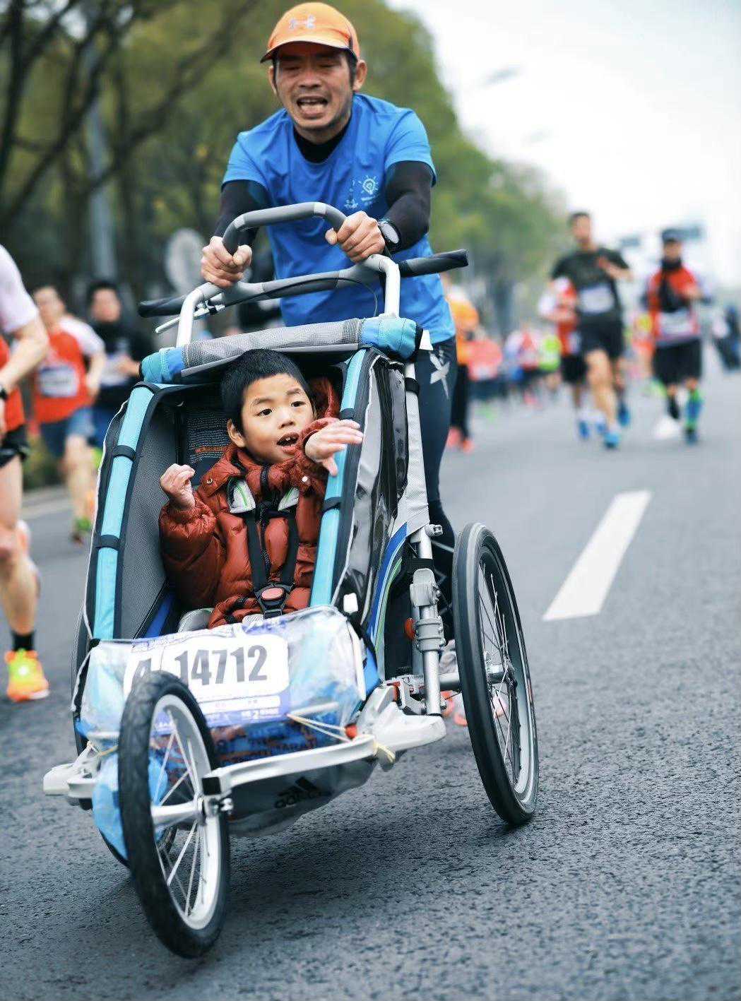 “爸爸快跑”——这位父亲,推着儿子跑过五十八个马拉松