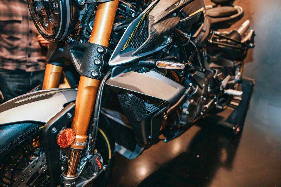 除了造型上的另类之外,这款车细节上的设计也很有意思,看似街车的造型,却是跑车的骑行三角,低矮的分体式车把有着向下的角度,脚踏的位置也相对靠后,整体坐姿非常战斗,再加上裸露的车架,像是跑车去掉外壳之后的样子,确实和它的名字一样随时准备Rush。