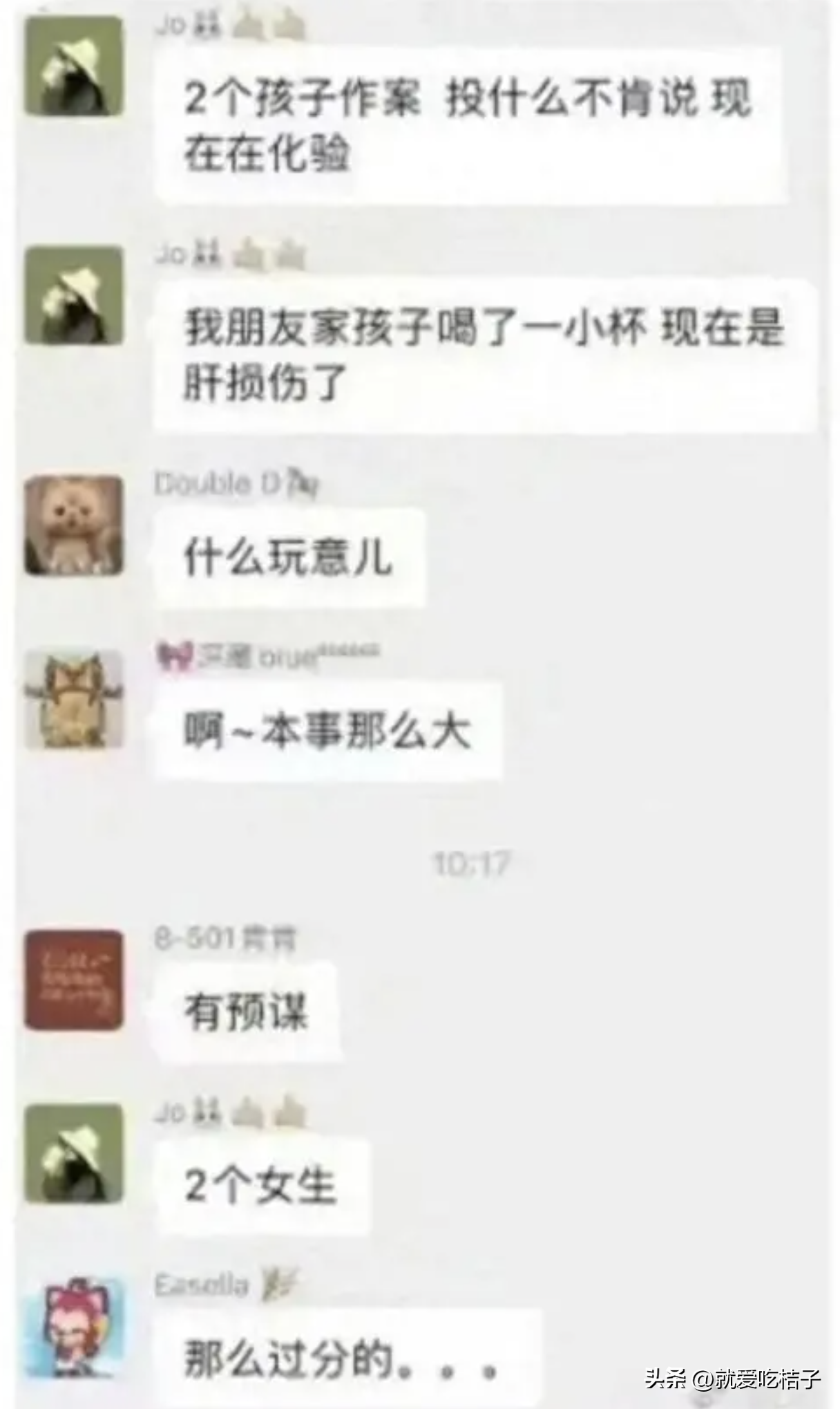 经过初步的调查,警方确认了投毒人为该校的两名学生,杨某某和郑某某,他们都是13岁,与出现“中毒”症状的学生同班。