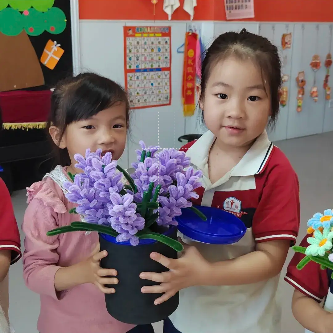 孩子们尝试着用扭扭棒来凹出不同造型的花朵。小小的扭扭棒,蕴含着大大的道理。生活是根扭扭棒,你可以弄得一团糟,但也可以学着扭出一朵向阳盛开的花。宝贝们,请保持心中的热爱!