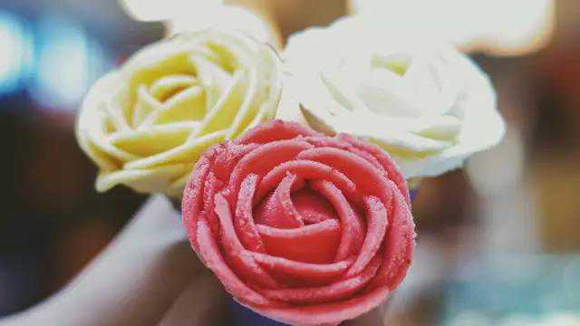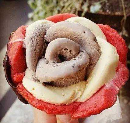 送你一朵可以吃的玫瑰花,女生不能拒绝的致命诱惑!意大利原装进口的冰淇淋,将花瓣一辦一瓣粘上去,把冰激凌做成玫瑰花的形状果然是需要独特的技巧的。