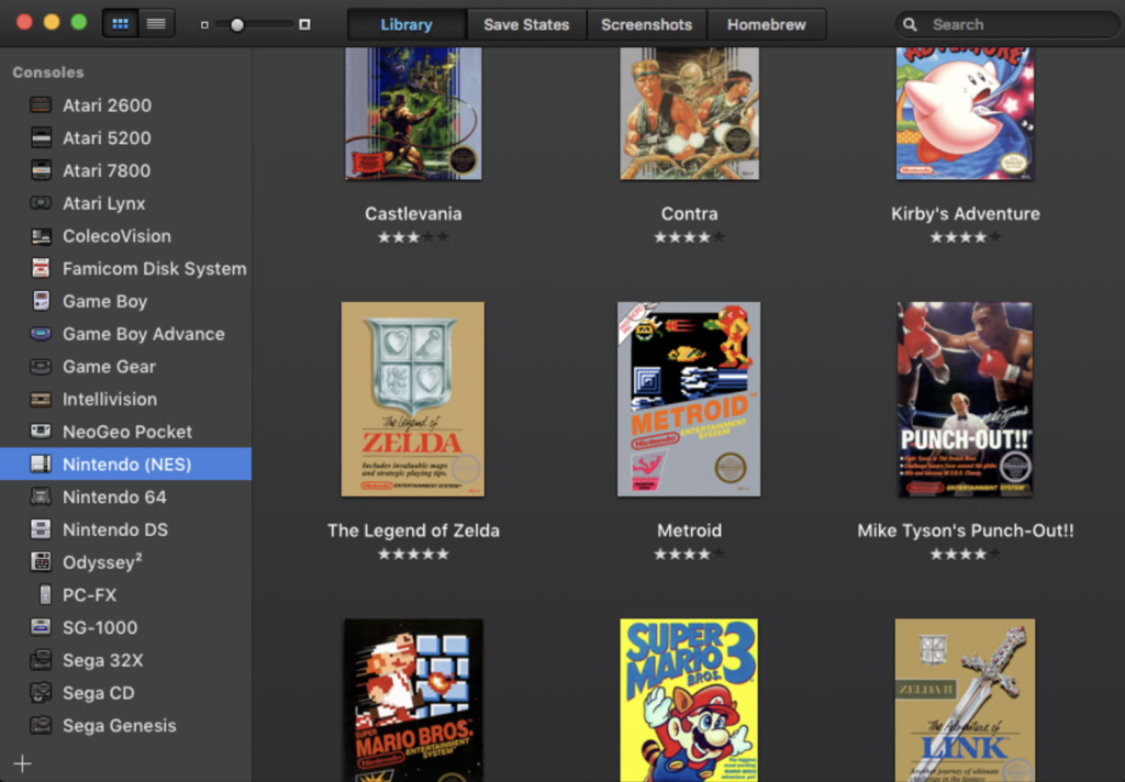 OpenEmu部分基于Retroarch,但旨在提供类似Mac的体验。它包括类似于iTunes的游戏图库视图,可帮助你管理游戏ROM