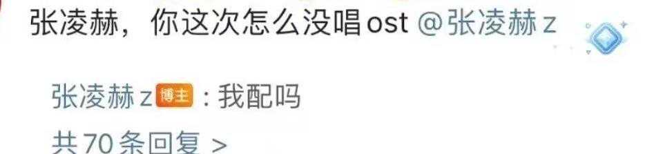 令人欣慰的是,张凌赫并没有因为大家拿他唱歌开玩笑而生气,相反,他也加入了这个调侃。有网友问他为什么没有唱OST,张凌赫回答说:“我配吗?”在接受采访时,他也大方地回应:“为了剧好,还是希望能找个专业歌手来唱OST。”。难怪这么多人喜欢张凌赫,他不仅长得帅,而且心胸宽广,谁能不喜欢呢?
