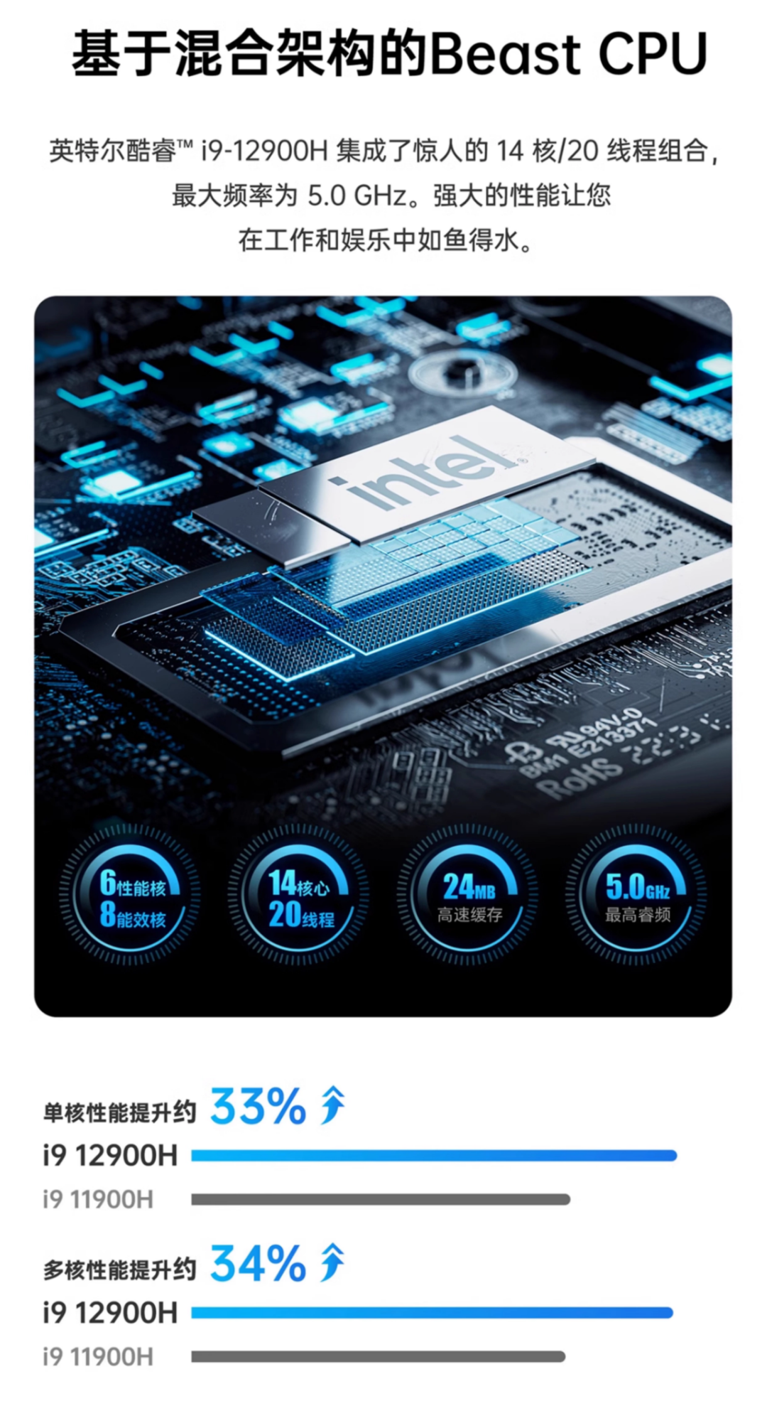 铭凡NAG6在配置上的最大亮点,就是搭载第12代酷睿i9-12900H移动处理器,拥有6大8小14核心20线程,最高睿频加速频率可达5.0GHz,集成锐炬Xe96核显。