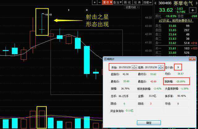 最后总结:射击之星形态常出现趋势上涨阶段,拥有反转行情的能力,是见顶的标志!投资者需留意手中股票是否存在此形态,做好出场的准备!