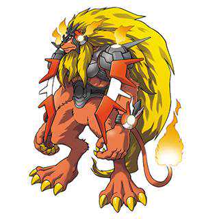 别名「翱翔天空的狮子」的兽型数码兽。守护着数码世界的某个遗迹,也是个很会照顾他人的首领般的数码兽。必杀技是全身包裹火焰,从上空急速下降突袭的「烈焰俯冲」,以及用包裹火焰的强劲前足将敌人撕裂的「火焰之爪」。还有集中全身力量到额头后放出的「火焰炸弹」。