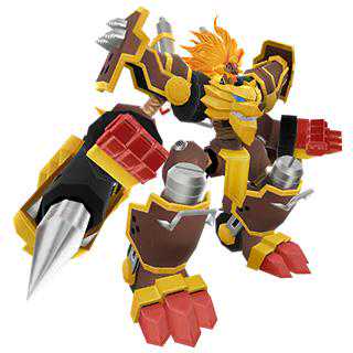 服务器上建设机械的CAD数据泄漏,与手型数码兽的构成数据融合诞生的机械型数码兽。鬃毛变成凿岩机,主要在隧道工程和时之数码合金矿山进行工作。时之数码合金的矿山多被坚硬的岩盘层包裹,其力量、耐久力在机械型数码手中都以顶级性能著称。工匠脾气,大多有着顽固的性格,装载狮子兽即喜欢争吵者,持这种看法的人不少。好像发生过因为装载狮子兽之间的争吵而导致埋藏量世界第一的矿山消失的事。必杀技是由鬃毛的超高速回旋产生的「钻孔暴风」,以及用尾部的铁球叩击的「装载晨星」。