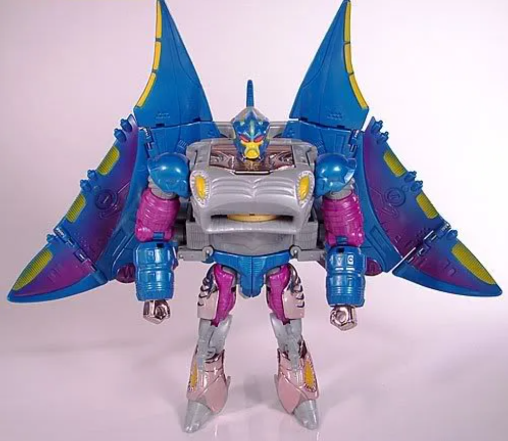 这款虎鹰即使拿到现在的产品线来看,也是不可多得的一款精品。要是非要挑缺点,一个问题可能是配色有点过于偏蓝,电镀没有那种动画里蓝泛紫的感觉。再一个就是白色原色塑料大量暴露,容易在紫外线作用下氧化发黄,所以现在的二手市场很难找到品相较好的虎鹰,毕竟已经经历了二十多年的风风雨雨了。