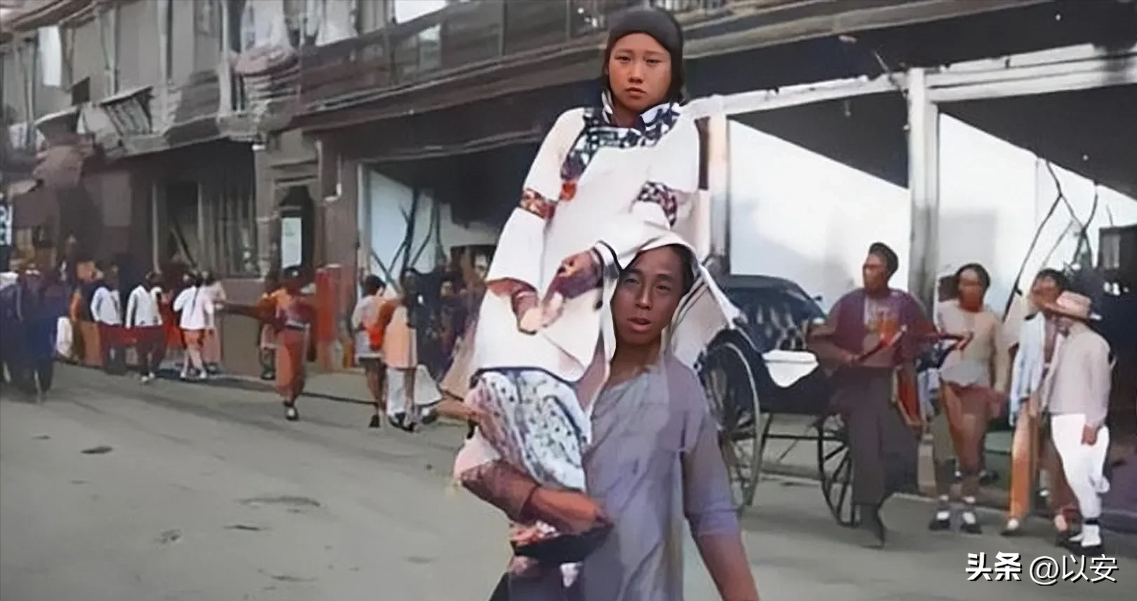1018、晚清妓女被龟奴扛在肩上接客的照片。