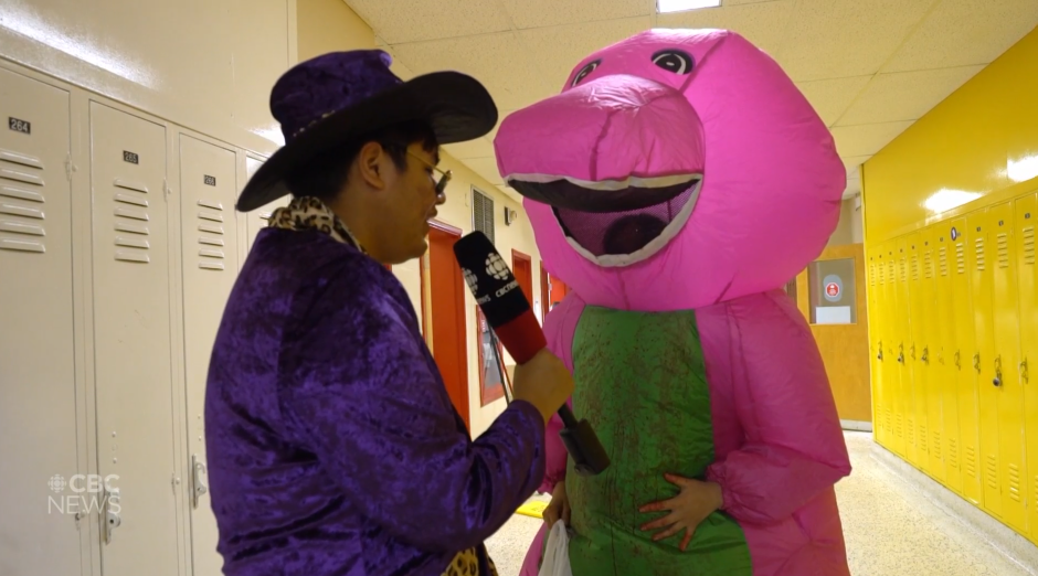 学生们纷纷换上奇形怪状的服装去学校上课,看这服装的形状和材料,估计是自己在家里DIY做的。