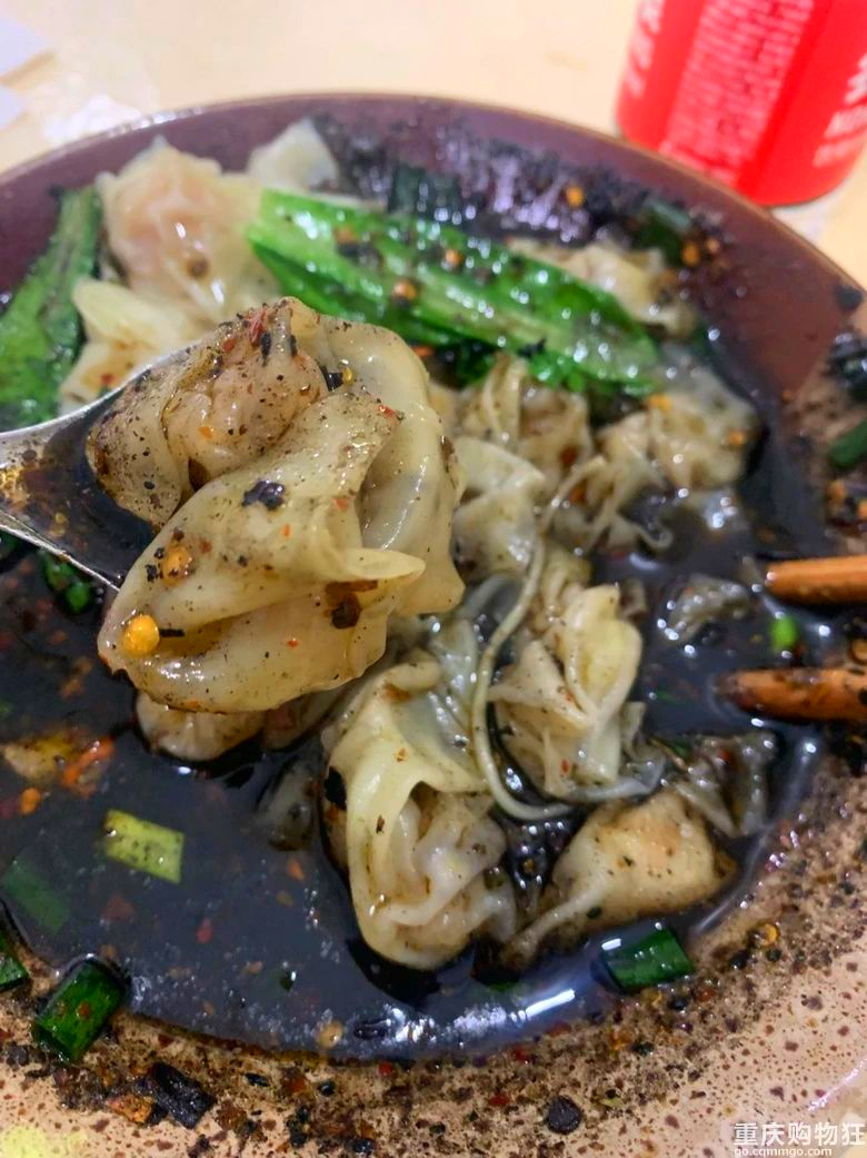 这边喊的包面,其实就是抄手。虽然看起来颜色比较重,但味道绝对巴适,里面加的胡辣壳把味道中和得刚刚好,满嘴都是辣椒的香。