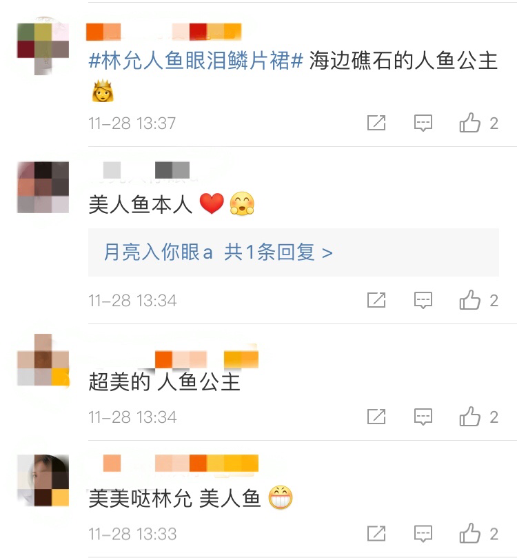 这次的造型同样惊艳了无数网友,纷纷留言表白,夸赞林允是"人鱼公主"。