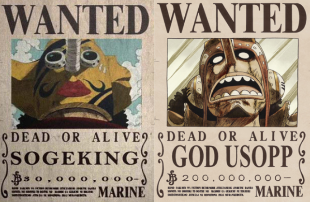 7.乌索普乌索普的两个悬赏令可以说都是受瞩目度达到巅峰时期的他,两年前的他这身打扮烧了世界政府的旗帜,两年后的他,因为打败砂糖而被被拯救的人成为神,名为GODUSOPP,可以说不愧是草帽一团的“实力”担当了。