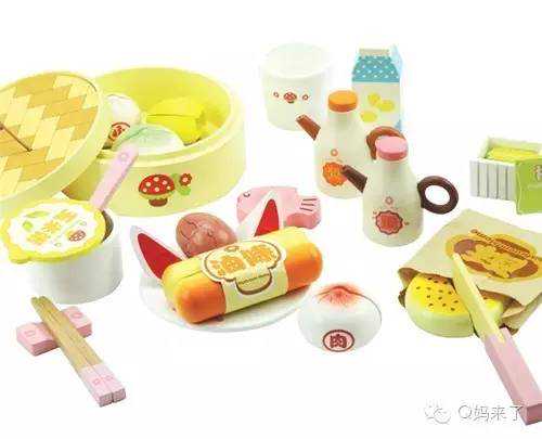我给小Q选了中式早茶,选择原因是这套玩具里有中国传统饮食文化。玩具拿回去以后,小Q爷爷奶奶特别喜欢,他们说早饭就该是这样丰盛的,有粥、糕点、油条……