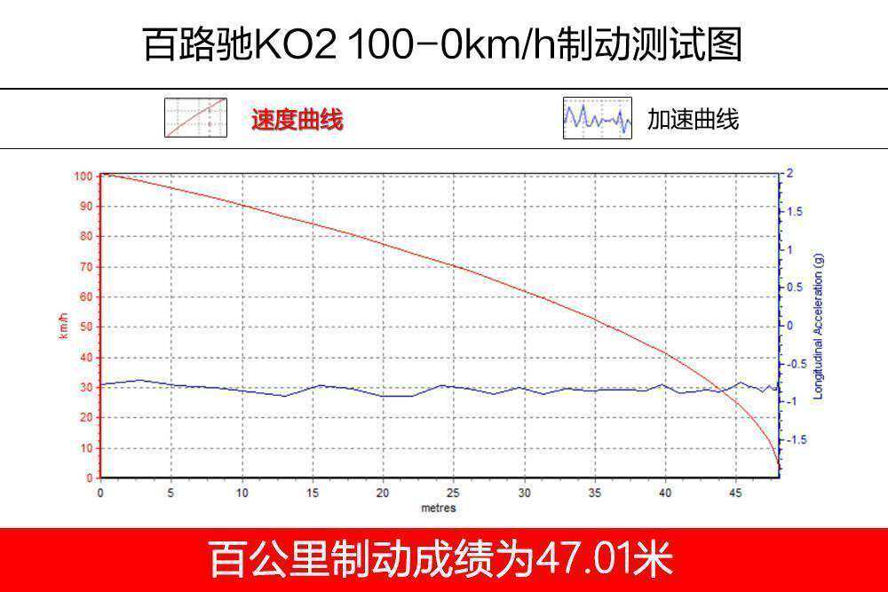 实测百路驰KO2百公里制动距离为47.01米,而黑熊AT2行者的百公里制动距离为47.66米。
