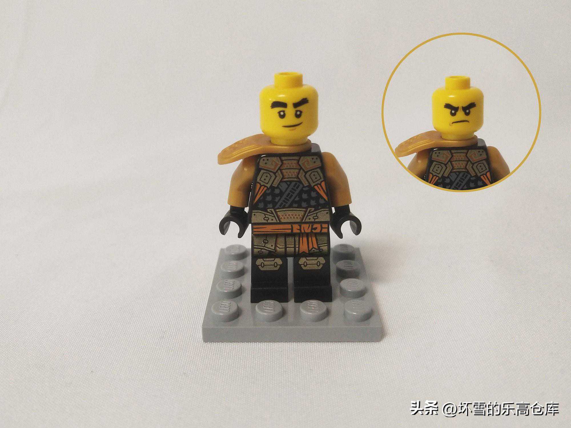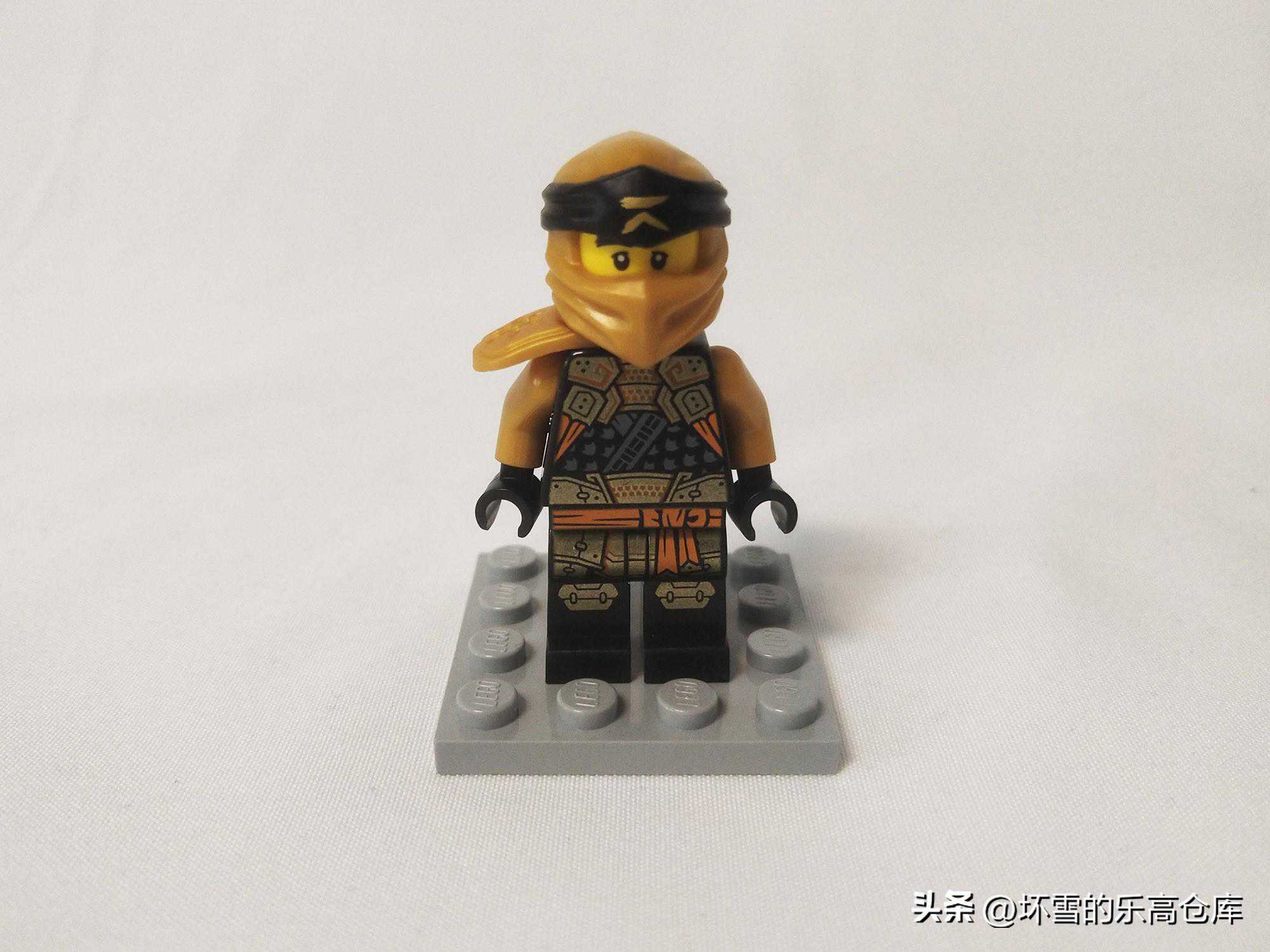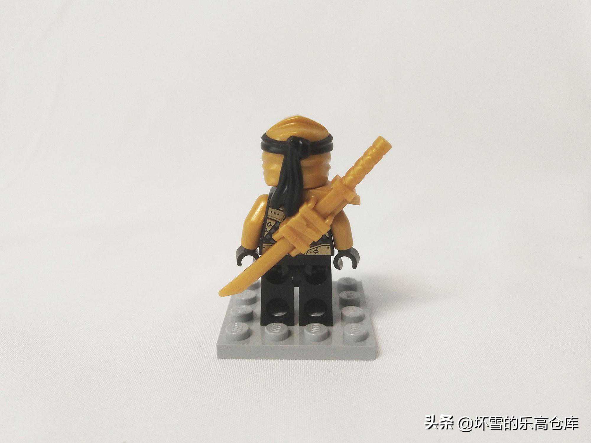 这款套装的寇是2022年的新款忍者造型,通过印刷可以看到躯干的细节非常丰富,纹理很细致,有种日式铠甲和忍者制服结合的感觉,只不过似乎少了标志性的忍者语姓名符号。原本的肩甲带着背部剑鞘的设计也被保留,肩甲和面罩的颜色也由灰色换成了金色。