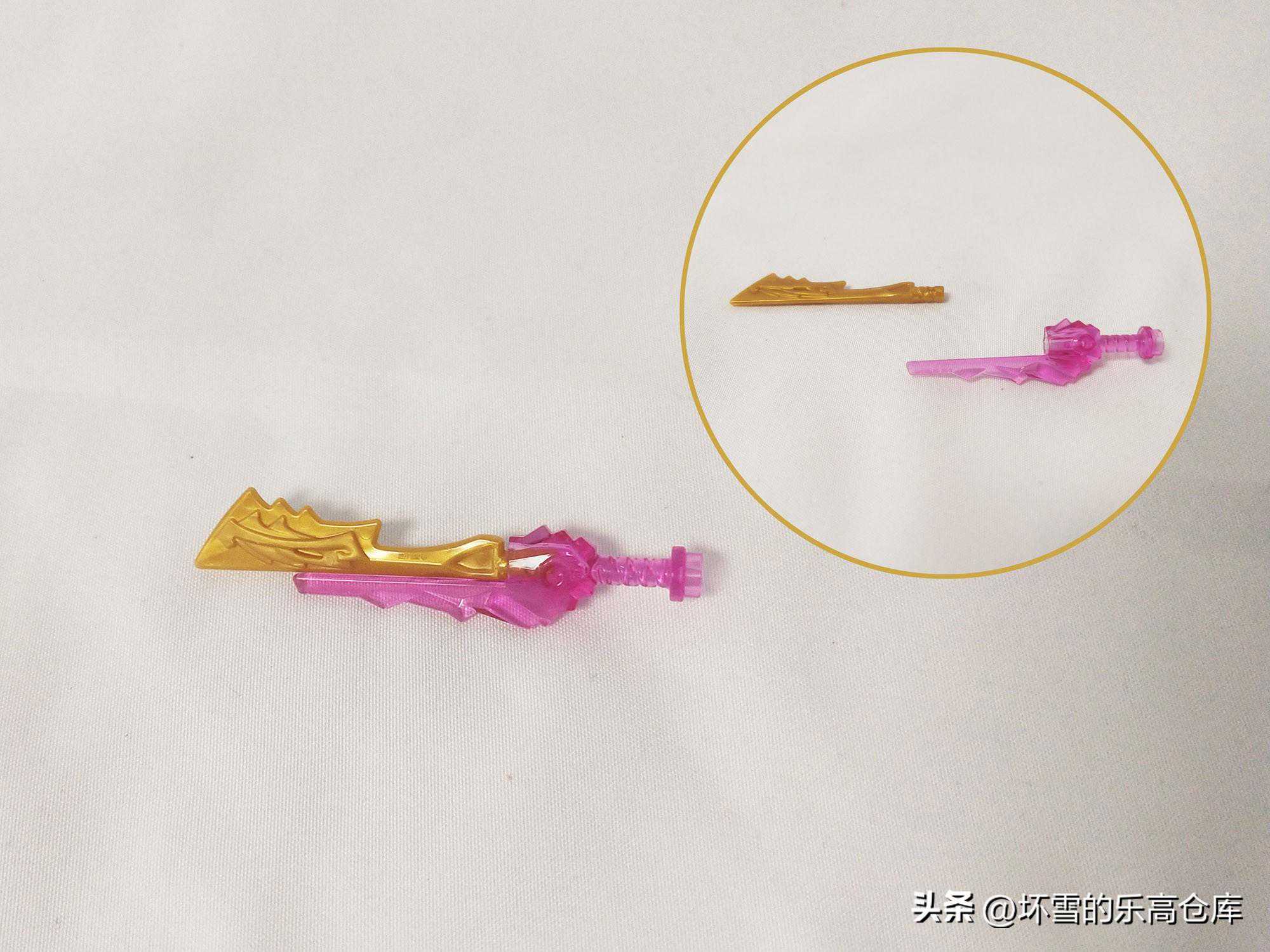 套装里对火焰剑的水晶化处理采用了嵌套的方式,即用一个可以手握的水晶刀把插上火焰剑,这样既可以形成了水晶化火焰剑,又可以取下来作为标准的火焰剑。