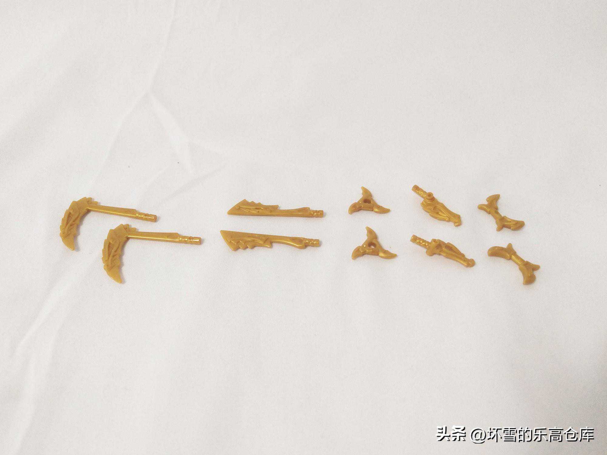 下一个人仔是金龙造型,一开始以为是个反派什么的。直到笔者仔细端详才发现,这居然是凯,火焰忍者凯。至于凯为什么会变成这个样子,现有的电视动画剧集还没有交代,应该会在今年十月份的忍者第十六季后半部揭晓吧。和凯同样的金龙形人仔一共有四个,另外三个分别是寇、赞和杰,分别出现在这季系列的其他套装里。推断应该是忍者团队在后面的战斗中觉醒了新的能力。