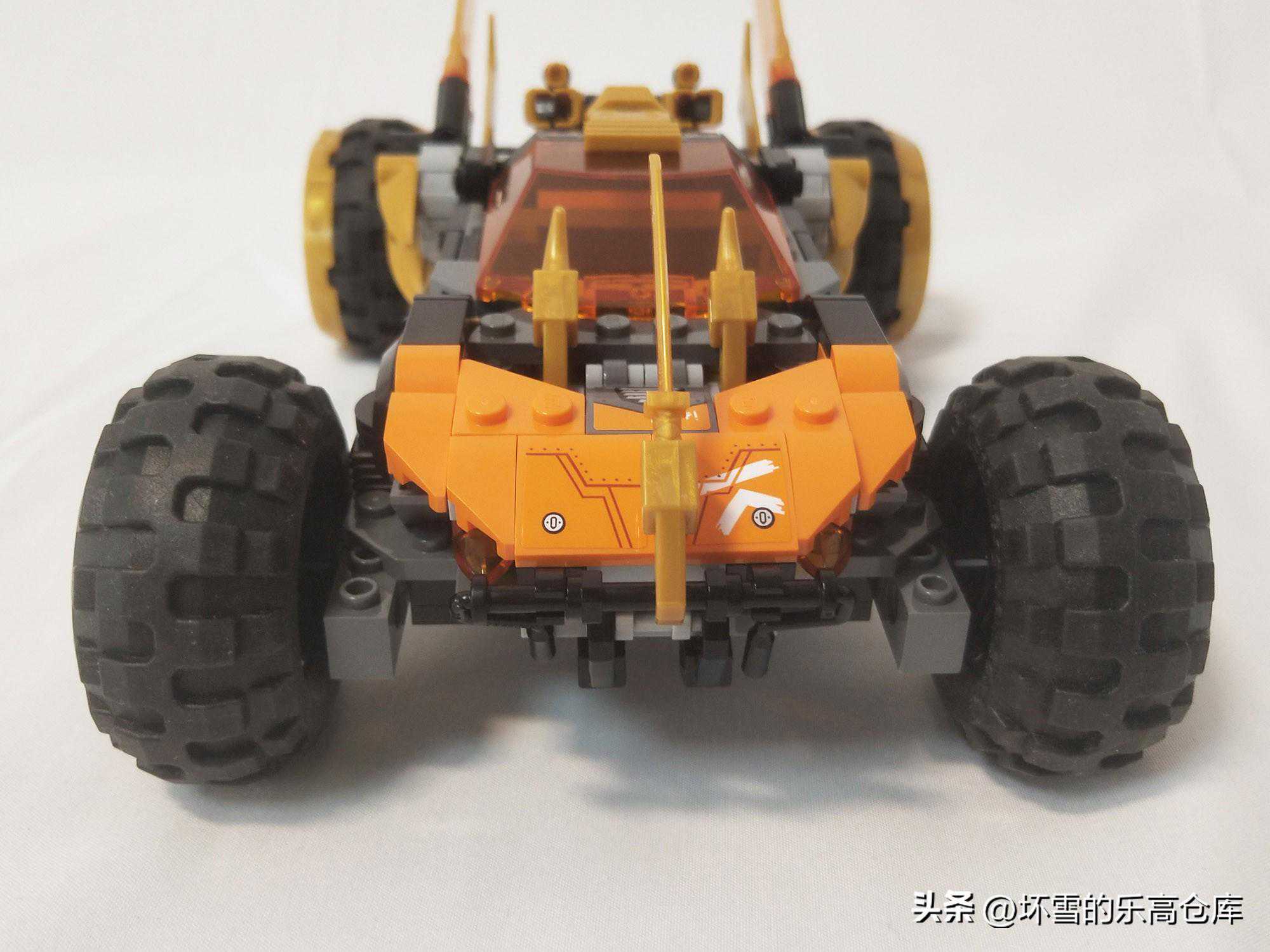 战车的车头是橙色的引擎盖,通过贴纸体现出金属的接缝和铆钉,以及寇的名字首字母的忍者语图案。