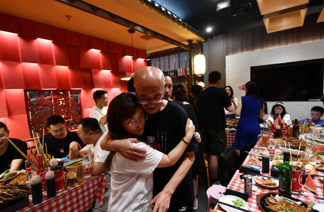 6月3日晚上,直播结束以后,所有人还是热热闹闹地去聚餐。
