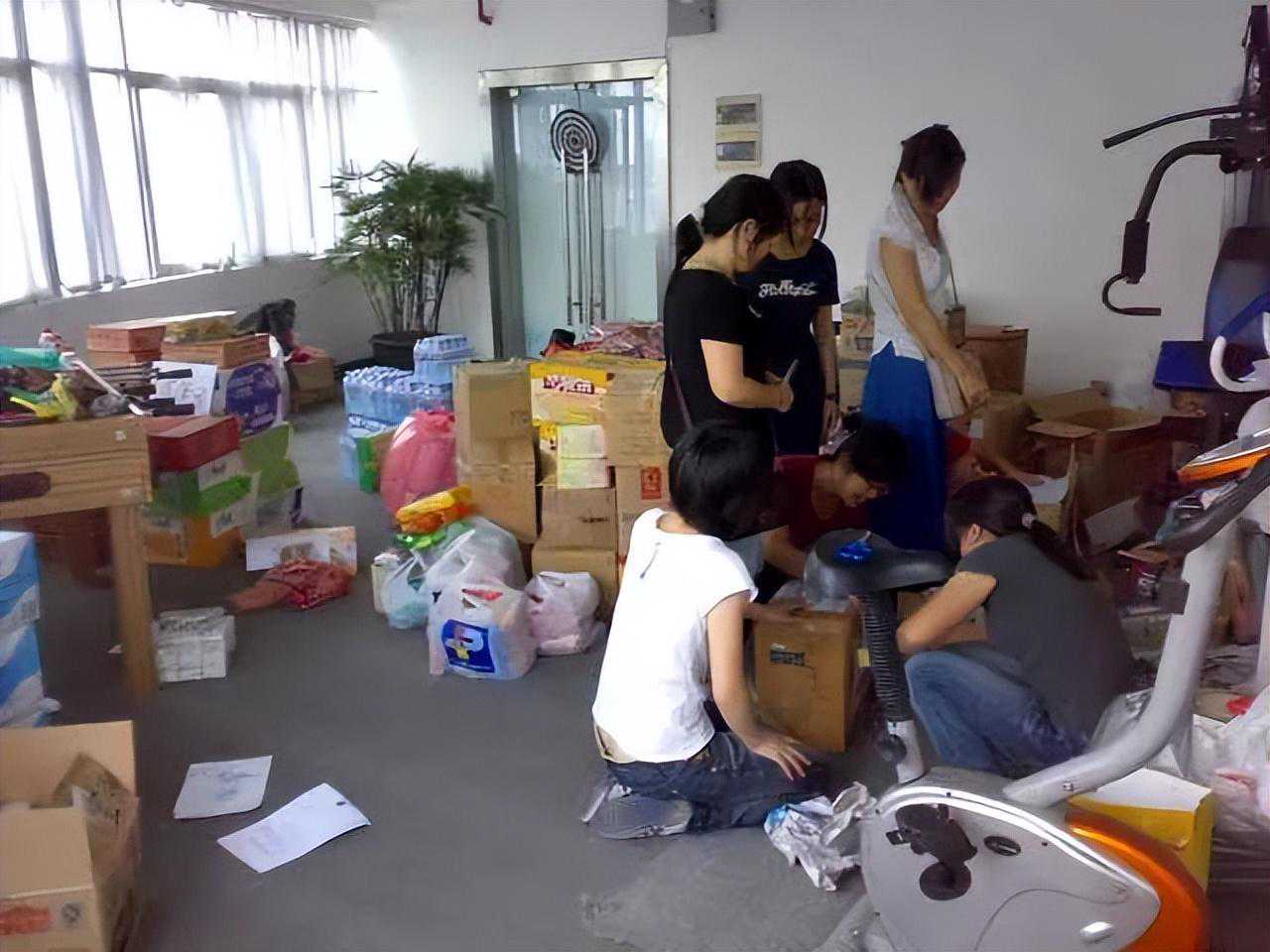 2008年汶川地震发生后,各地网友将赈灾物资寄往天涯公司(受访者供图)