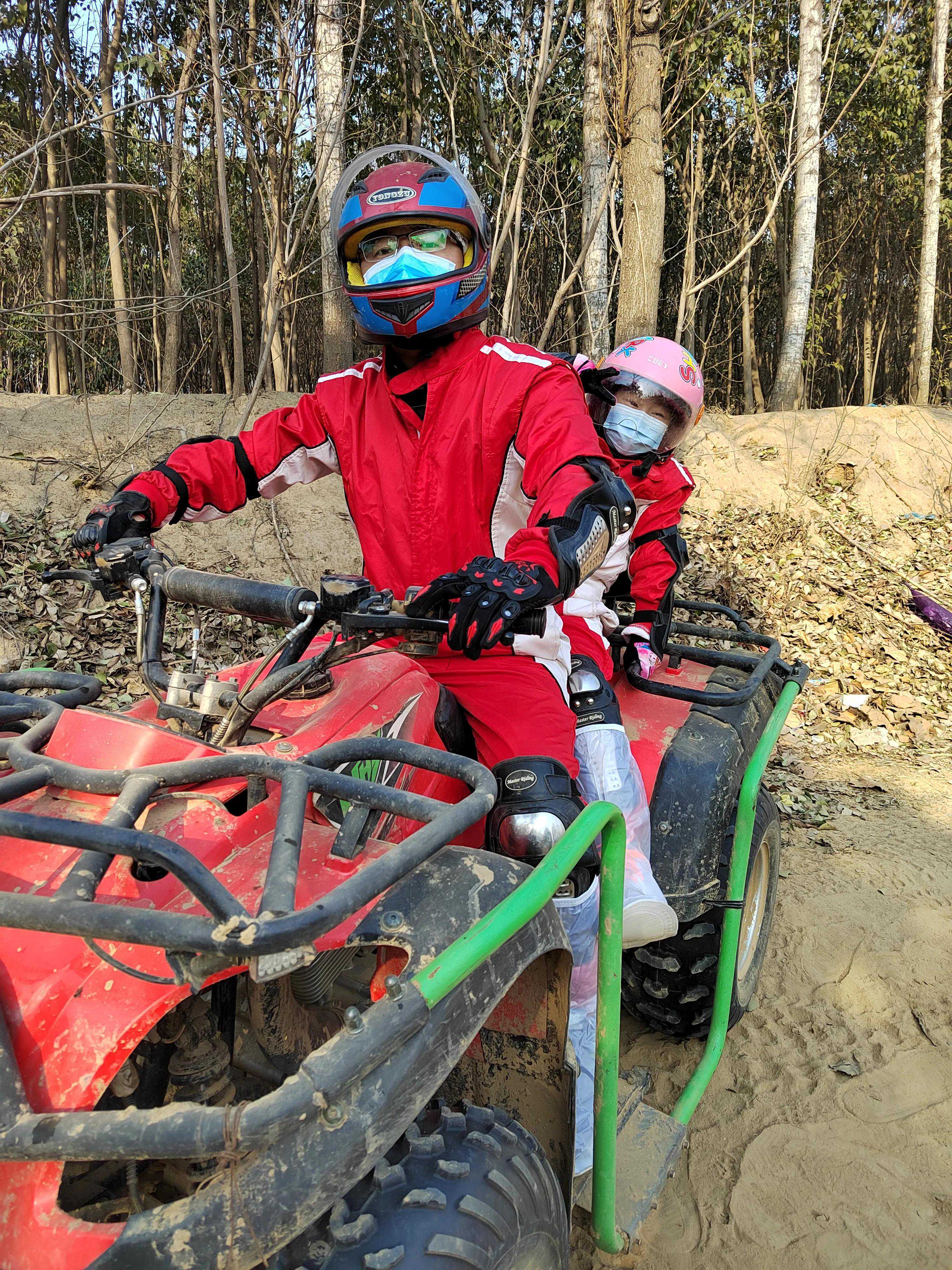 全程1个小时,时间吊打8分钟卡丁车,足够过瘾;专业队服,头盔,头套,护肘,护膝,鞋套也很贴心,但还是免不了“灰头土脸”。结束之后,朋友以为她老公眼睛上是眼影,没想到一摸是灰尘,笑趴了。