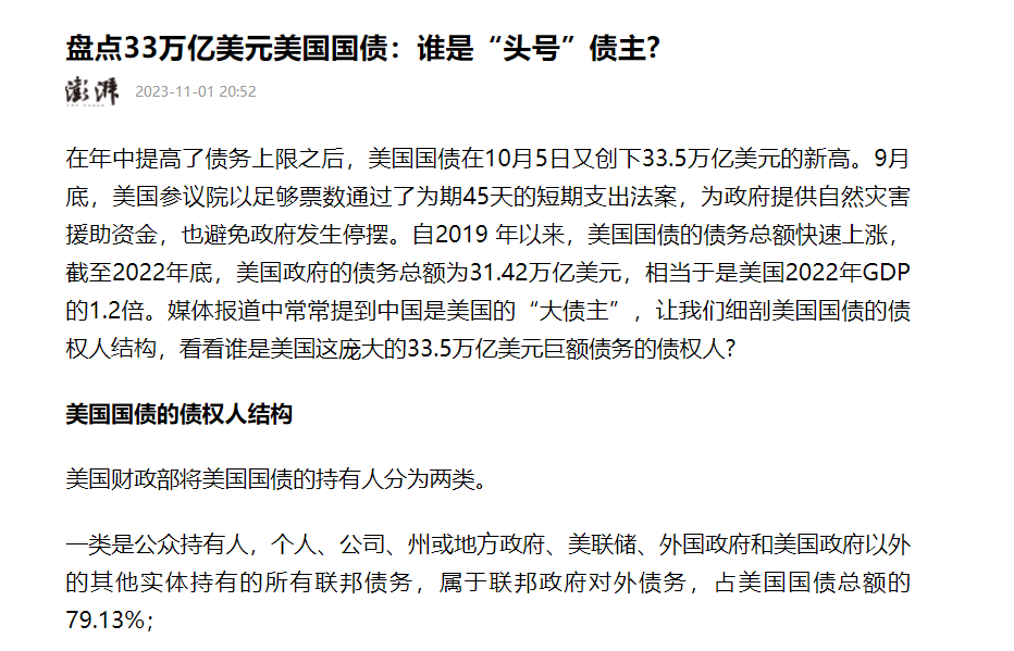 然而,中国这一抛售,大家发现,美国最大的债主,竟然不是我们一致认为的日本或者英国。